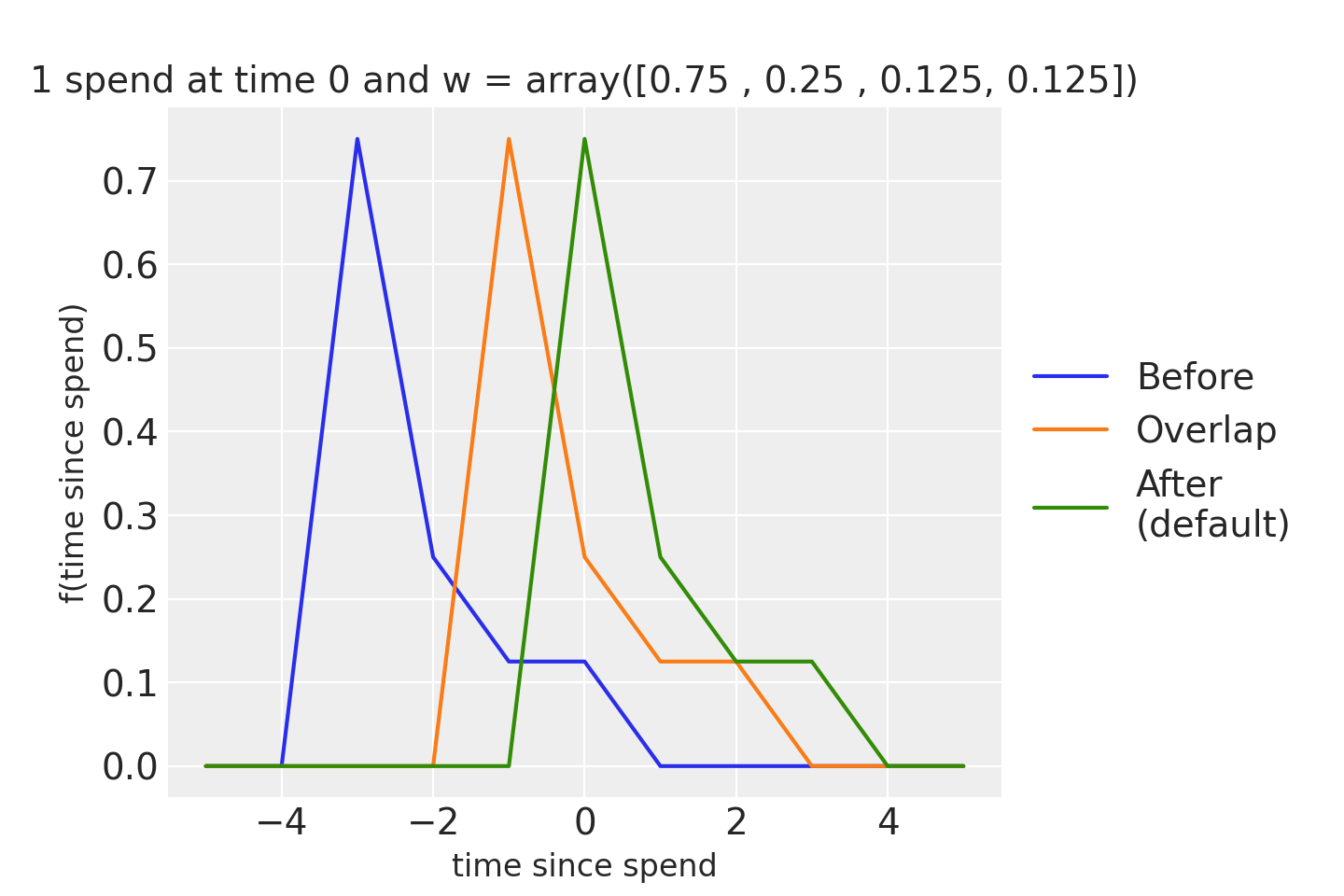 • ConvMode.After: Applies the convolution with the “Adstock” effect, resulting in a trailing decay effect.